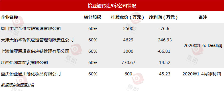 “公司380分銷平臺(tái)擁有湖南錦和樂(lè)、重慶川渝美妝等優(yōu)質(zhì)品牌連鎖加盟商……”怡亞通在2017年財(cái)報(bào)中如此寫(xiě)道。然而一轉(zhuǎn)眼,今年9月5日,怡亞通發(fā)布公告稱將掛牌轉(zhuǎn)讓重慶怡亞通川渝化妝品有限公司、陜西怡瀾韻商貿(mào)有限公司兩大化妝品代理商的股權(quán),合計(jì)掛牌底價(jià)為1370萬(wàn)元,加上包含周口市時(shí)金供應(yīng)鏈管理有限公司在內(nèi)的另外3家公司,此次5家將被怡亞通轉(zhuǎn)讓的公司合計(jì)掛牌底價(jià)約1.15億元。