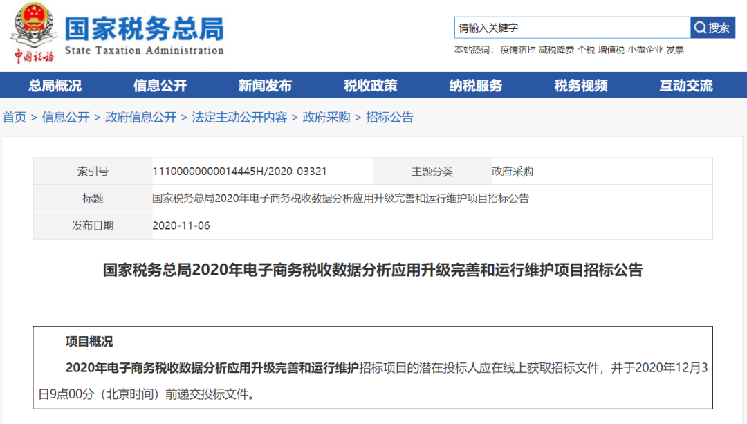 盡管電商自查風(fēng)波已經(jīng)過(guò)去,但是廣大電商企業(yè)仍舊不能放松對(duì)于稅務(wù)問(wèn)題的關(guān)注,無(wú)論從電商自查的監(jiān)管手段,還是近期三部門(mén)聯(lián)合召開(kāi)的行政指導(dǎo)會(huì)精神來(lái)看,未來(lái)國(guó)家對(duì)于電商產(chǎn)業(yè)的稅務(wù)機(jī)關(guān)是日趨嚴(yán)格的,未來(lái)對(duì)于電商平臺(tái)以及商戶的稅收監(jiān)管手段會(huì)不斷完善,促使電商產(chǎn)業(yè)的稅務(wù)管理趨向規(guī)范化。我們關(guān)注到,近期國(guó)家稅務(wù)總局發(fā)布了主題為“2020年電子商務(wù)稅收數(shù)據(jù)分析應(yīng)用升級(jí)完善和運(yùn)行維護(hù)項(xiàng)目”招標(biāo)公告,其招標(biāo)需求為:“在發(fā)揮好原有系統(tǒng)數(shù)據(jù)獲取和分析的基礎(chǔ)上,根據(jù)新的法律法規(guī)要求和電子商務(wù)發(fā)展的趨勢(shì),摸清電子商務(wù)平臺(tái)基本情況,并根據(jù)稅收征管特點(diǎn)進(jìn)行合理分類,同時(shí)擴(kuò)大原有電子商務(wù)稅收數(shù)據(jù)采集、分析、應(yīng)用范圍,持續(xù)做好項(xiàng)目運(yùn)維服務(wù),為電子商務(wù)稅收數(shù)據(jù)供給和分析應(yīng)用穩(wěn)定運(yùn)行提供保障。”