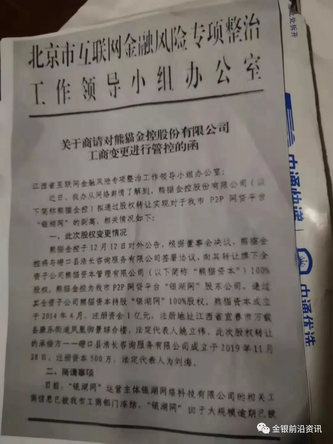 (3)發(fā)函情況,內(nèi)蒙古方面還表示,收到了江西的轉(zhuǎn)發(fā)過來的函,該函為市金r局“北京互聯(lián)網(wǎng)金融風(fēng)險專項整治小組行文發(fā)給江西jrj的《關(guān)于商請對熊貓金控有限公司工商變更進行管控的函》”,為12月16日北京發(fā)給江西的。我們的借友觀看了該函,如下圖,也希望大家認認真真讀幾遍。